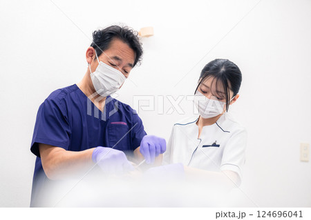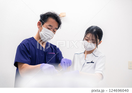 歯科治療をする歯科医師と歯科助手
