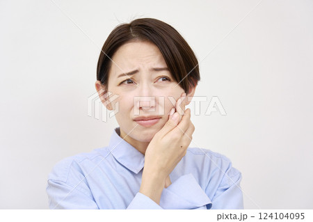 女性 歯痛 白背景