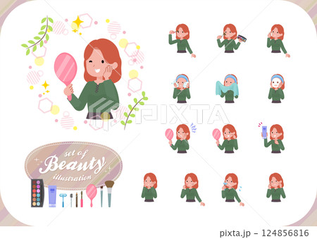 美容に関する赤髪女性のセット