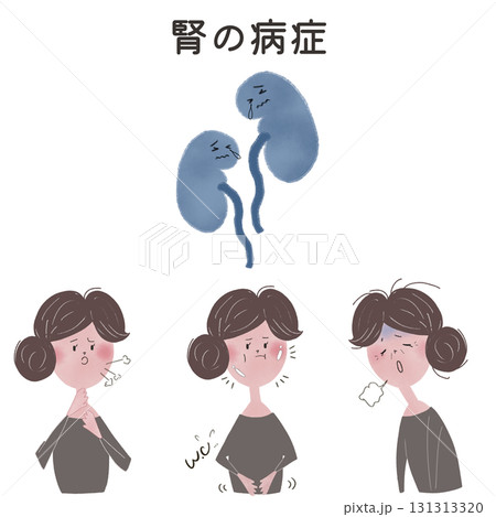 五臓の腎の機能が低下した時に現れる症状を、若い女性で表現したイラスト