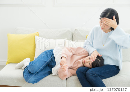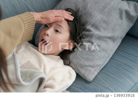 熱を出した小学生の女の子とお母さん
