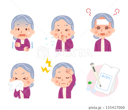東洋医学の虚証と実証の症状のイラスト・高齢女性