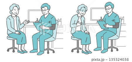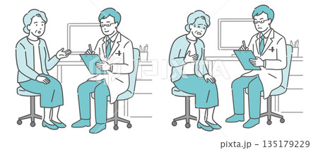問診と体調不良の高齢女性セット(男性医師・白衣)
