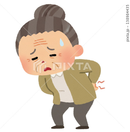 吐き気や気分の悪さで苦しむシニア女性(おばあちゃん)のイラスト