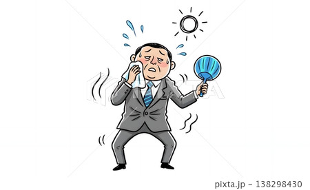 猛暑の炎天下で汗をかき熱中症寸前のぐったりしたビジネスパーソン