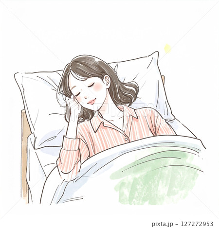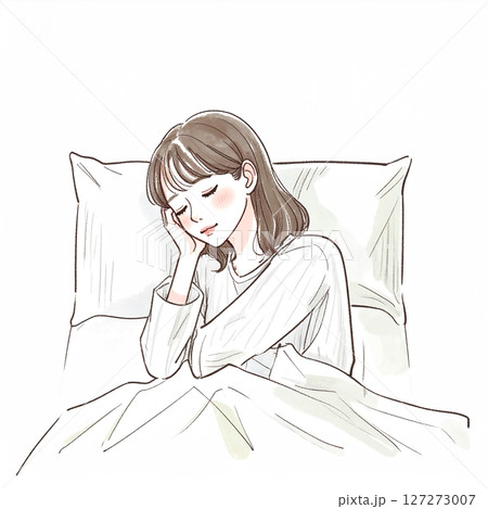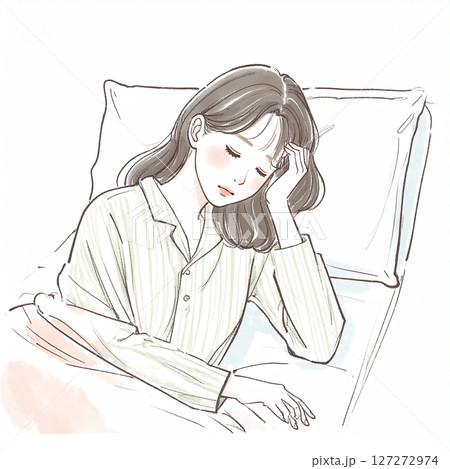 ホルモンバランスや自律神経の乱れによるさまざまな体調不良の症状を示す女性のイラストセット