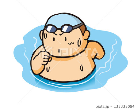 ダイエットのため水中ウォーキングを頑張る太った男性