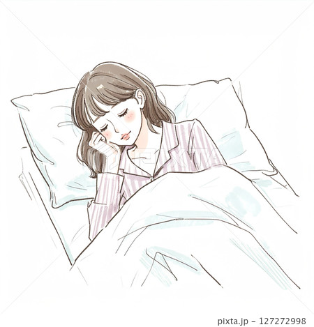 睡眠、眠る、ベッドで横になる女性