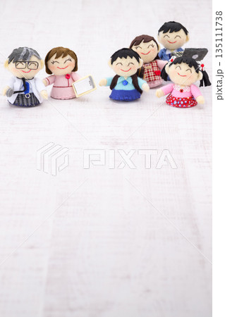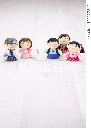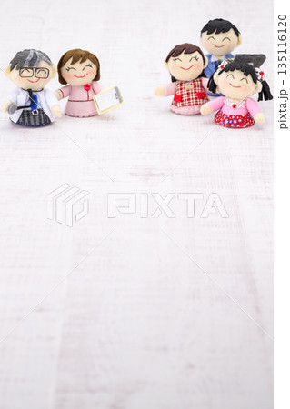 医師、看護師、家族の人形