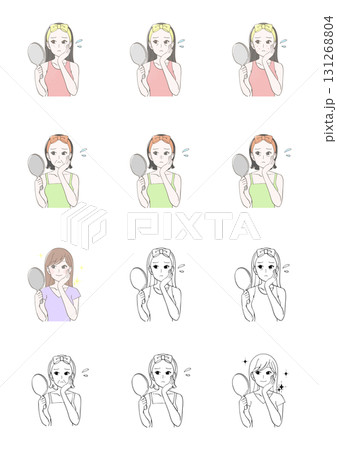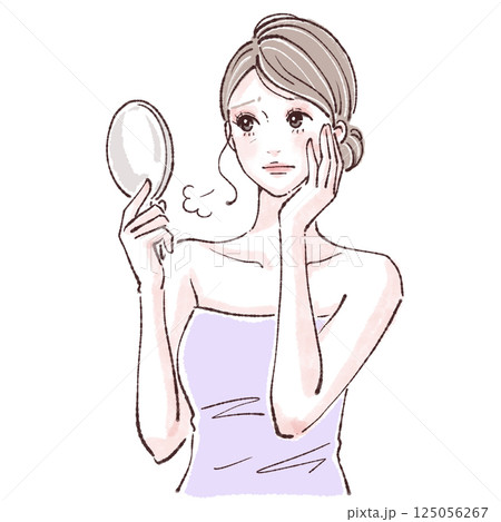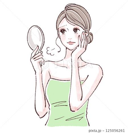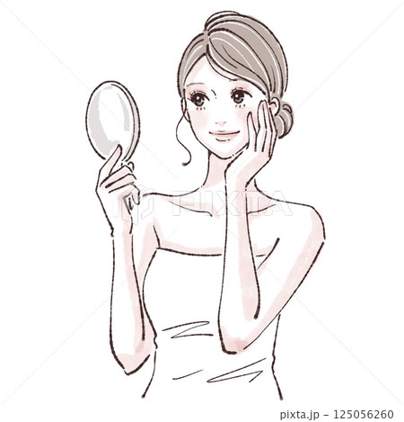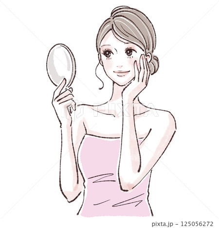 鏡を見る女性/お肌の調子/女性・女の子のイラスト素材