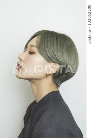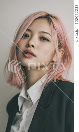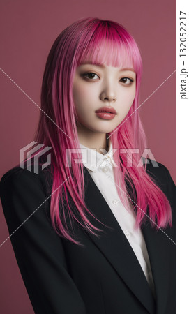 カットモデル ピンクに染めた髪の毛 日本人女性