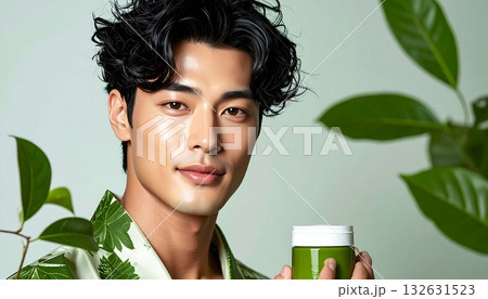 若いイケメン男性・ヘアスタイル/スキンケア「AI生成画像」
