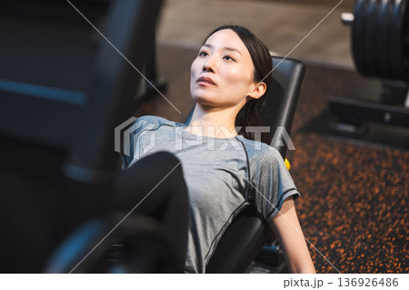 スポーツジムで筋トレをする若い女性