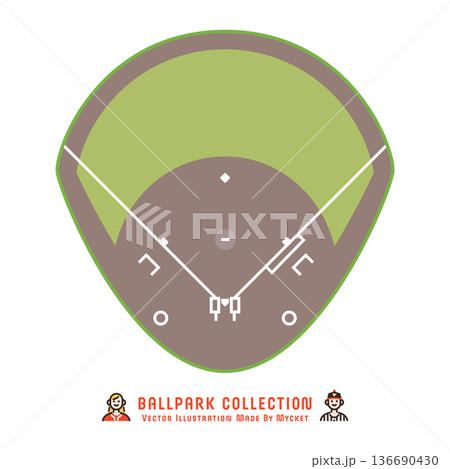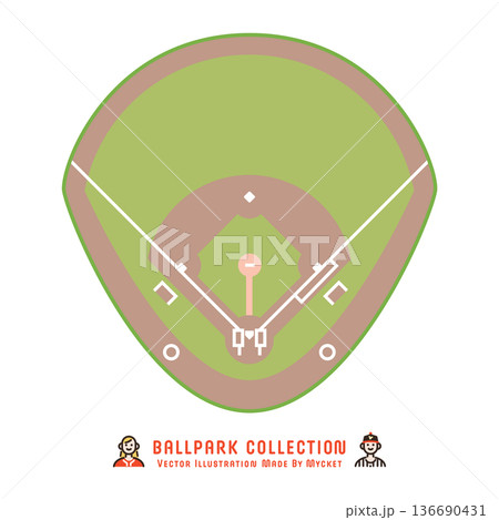 ポップでカラフルな野球フィールドのイラスト素材|球場,ダイヤモンド,スポーツ