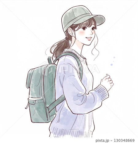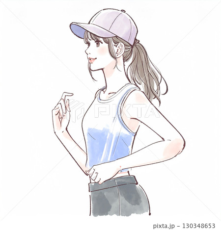水彩画・手描き風のランニングをする女性・女の子のイラスト素材