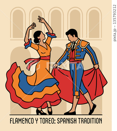 Flamenco dancer and toreador. Spanish traditions. Vector illustration