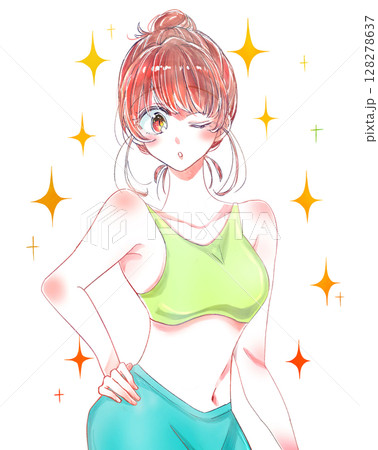 ガッツポーズをするスポーツウェアを着た女性のイラスト