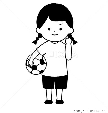 サッカーボールを持つ少女 ファイトポーズ(白黒)