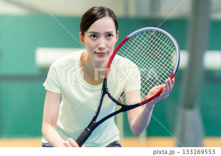 スポーツジムでテニスをする若い女性 撮影協力:スポーツクラブ&サウナスパ ルネサンス 幕張24