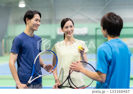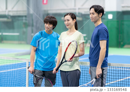 スポーツジムでテニスをする若い男女 撮影協力:スポーツクラブ&サウナスパ ルネサンス 幕張24