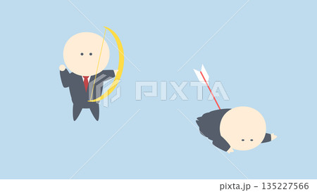 ビジネスイメージイラスト_弓矢で撃つビジネスマンと倒れるビジネスマン