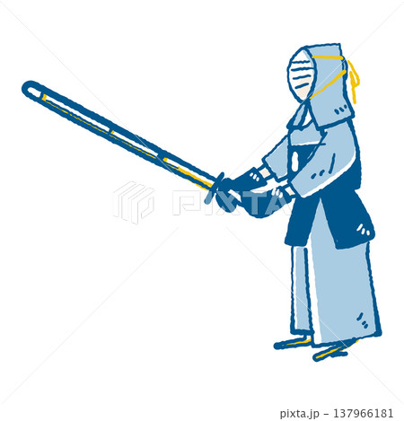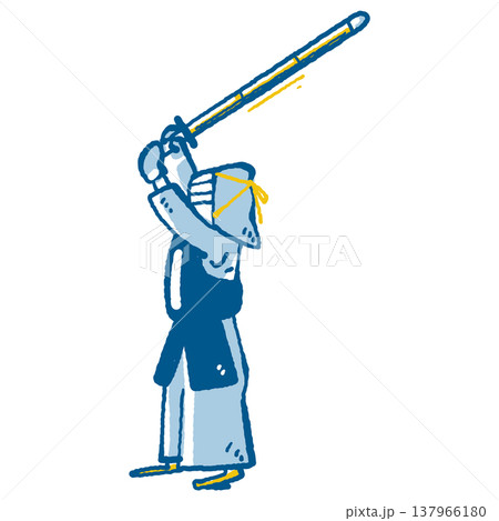 剣道の道着を着て、構える男性のイラスト