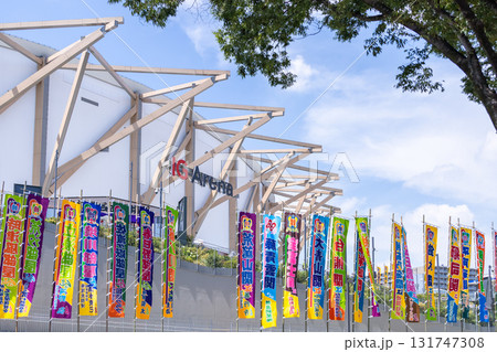 大相撲のぼり旗が立ち並ぶ IGアリーナ