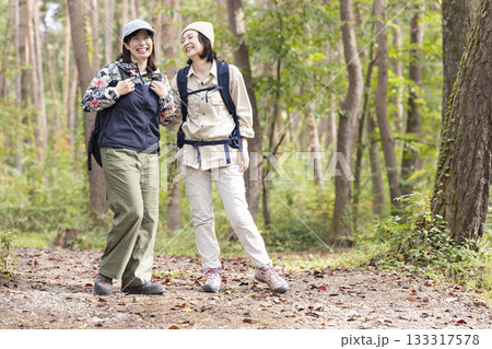 ハイキングを楽しむミドル女性