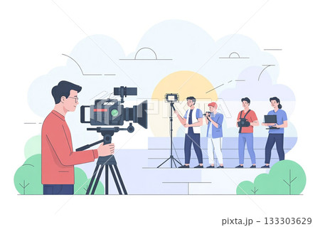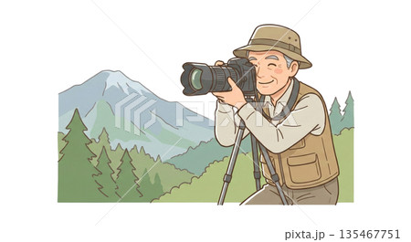 カメラを構える男性カメラマン 水彩イラスト PNG 透過背景素材