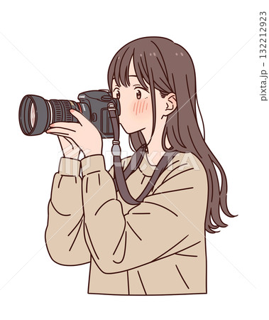 カメラを持ち写真を撮る女性 イラスト素材(趣味・撮影)