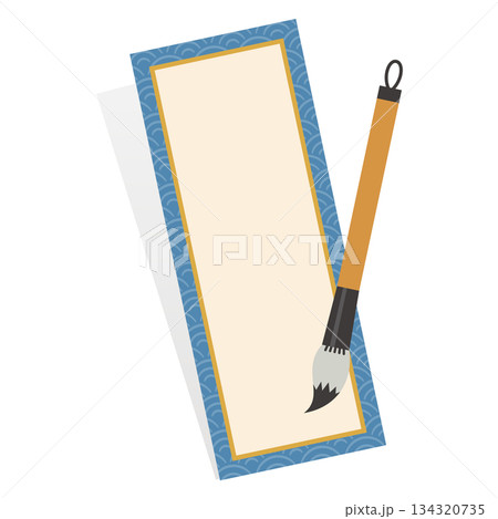 筆と短冊シンプルなフレーム 和風のベクターイラスト素材