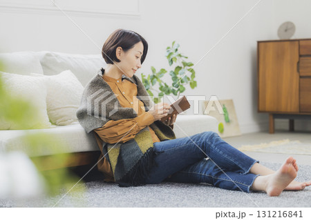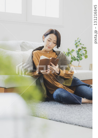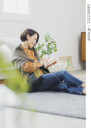 屋外で読書をする若い女性 ライフスタイルイメージ