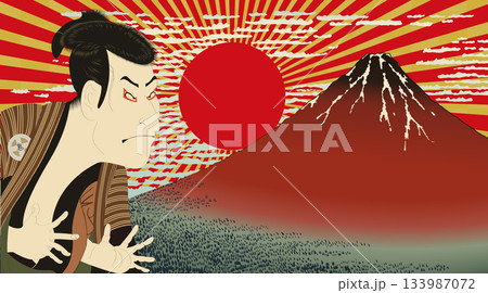 写楽 浮世絵アレンジ 大谷鬼次 奴江戸兵衛 歌舞伎 大首絵 歌舞伎定式幕背景イラスト