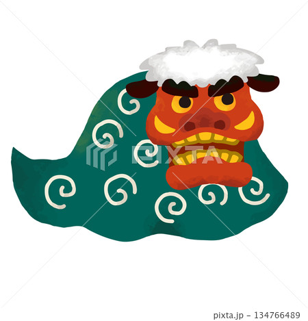 かわいい手描きの獅子舞のイラスト