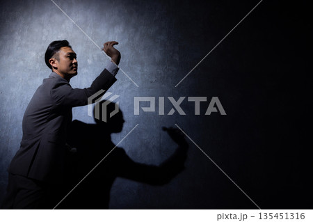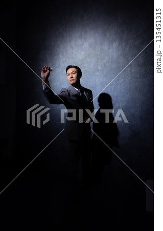 暗い背景のビジネスマン