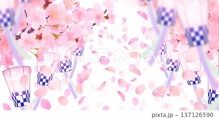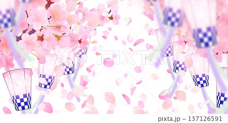 桜とお花見のバナー背景。春のイベント、お祭り、キャンペーン用フレーム素材
