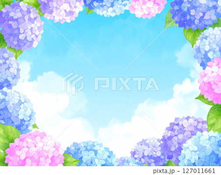 梅雨の紫陽花 背景フレームイラスト ☆ バリエーション多数