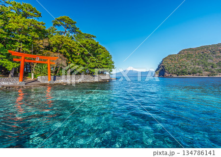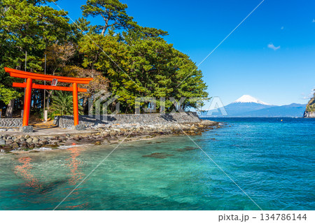 諸口神社 駿河湾と富士山と鳥居 「沼津市戸田」