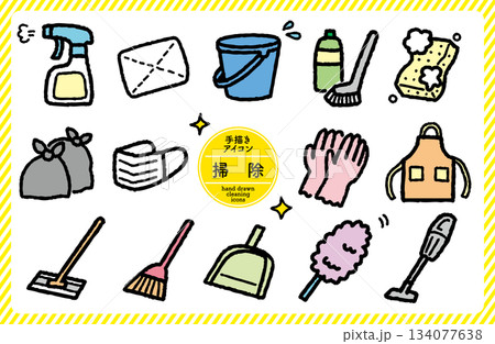 手描きのゆるかわアイコンセット|掃除|カラー・カラフル・線画