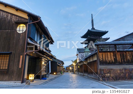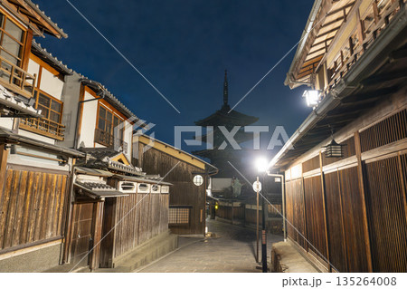 冬の法観寺(八坂の塔) 早朝の街並み 京都府京都市