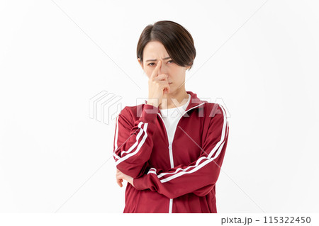 歩く体育ジャージを着た女子学生 手作業で精密に切り抜いた背景透過全身写真PNG