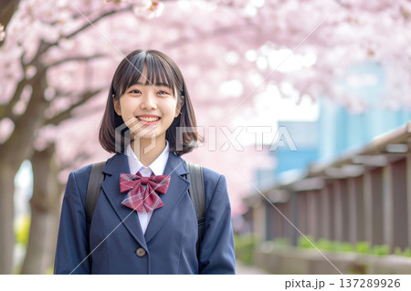 桜咲く春の大学卒業式で笑顔を見せる卒業生 新しい門出と祝福のイメージ