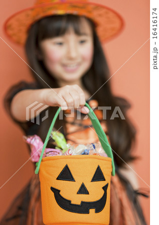 ハロウィンのお菓子を持つ女の子