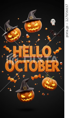 Halloween celebration in october with pumpkins, candy, and bats for seasonal design