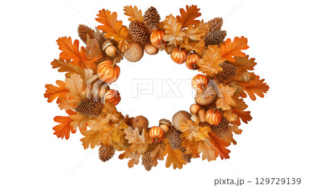 Autumn wreath with leaves and pumpkins, created with AI, PNG