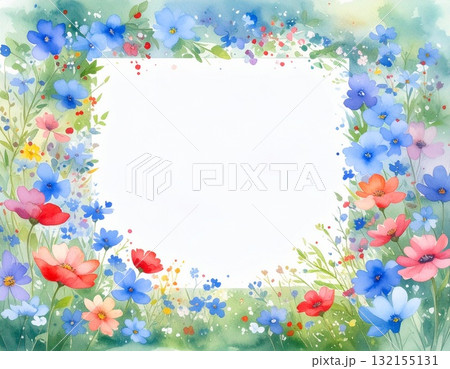 春色水彩フラワーで彩るエレガントな空白フレーム背景