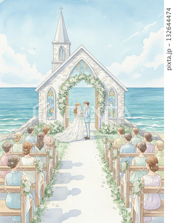 結婚式の新郎新婦のイラスト、ウェディングドレス、洋装