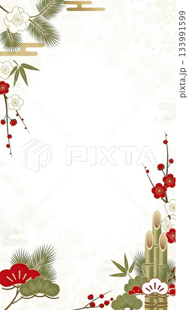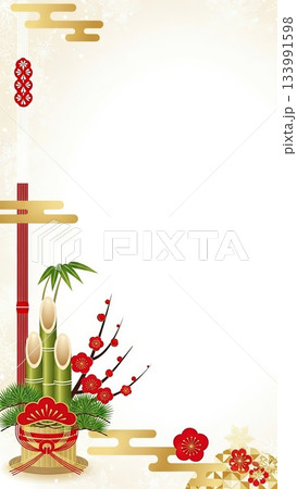 門松の白と金の上品なお正月セール、お年玉の和風背景画像