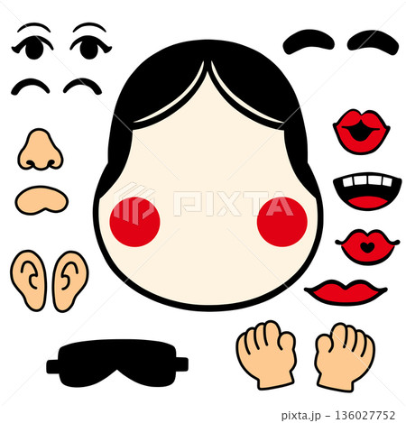福笑いセット(おかめ)立体折り紙イラスト/背景透過