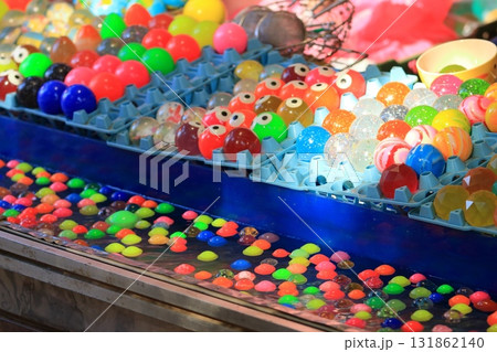 夏祭りで楽しむスーパーボールすくいとカラフルなおもちゃ